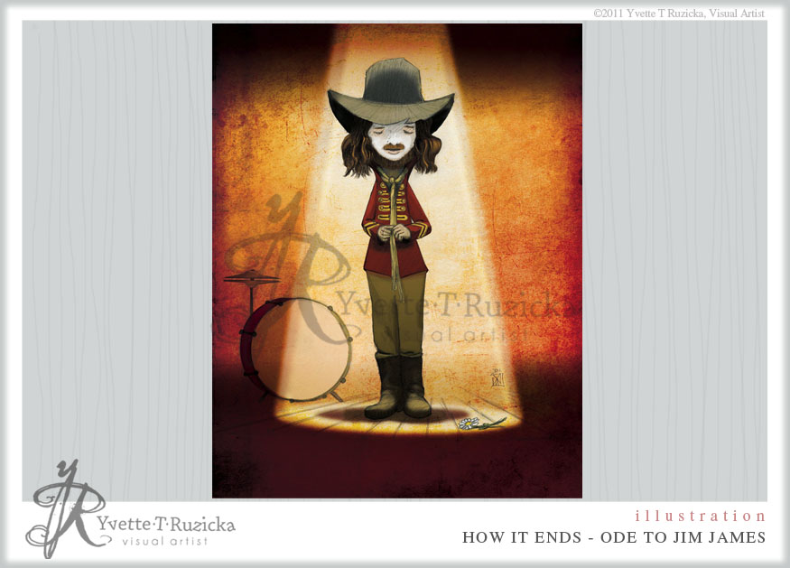 This illustration is from a scene in the movie “I’m Not There”. The singer in the scene is Jim James from my My Morning Jacket, song by Bob Dylan. I just thought it was the best scene in the movie. It was so captivatingly erie that I had to illustrate it. So this is dedicated to Jim James and the fantastic voice he carries and the genius words of Bob Dylan.